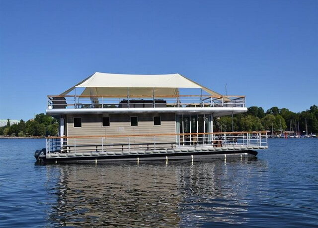 Swedish house boat located in Stockholm were you stay on the water and replace your views and the environment when you want.
